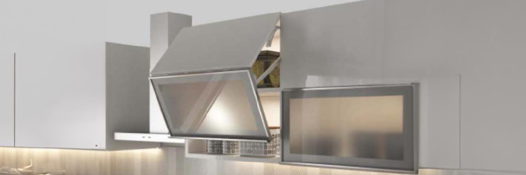Bi-fold lift-up systems with soft closing mechanisms are designed to enhance convenience and accessibility in overhead cabinetry. Suitable for Kitchens, Living spaces, and Commercial furniture, they offer smooth, space saving operation and gentle closing action.